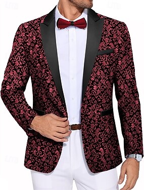 男性用 ブレザージャケット タキシード ノッチカラー ファッション ディスコ スパンコール 仕様 ルビーレッド プラスサイズ シングルブレスト 一つボタン