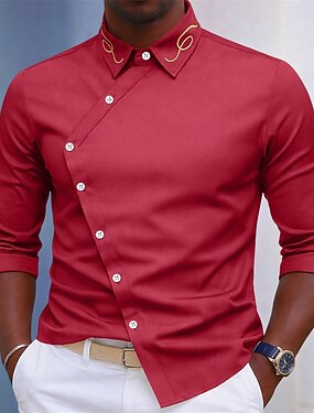 男性用 シャツ ドレスシャツ ボタンアップシャツ プロムシャツ カラーブロック 日常 ビジネス ブラック ホワイト ルビーレッド ダークブルー 長袖 折襟 オールシーズン 衣類 刺繍