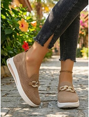 チェーンディテールのレディーススリッポンスニーカー - リゾート旅行、市内観光、カジュアルな外出、毎日の快適さのための通気性のある軽量ウォーキングシューズ