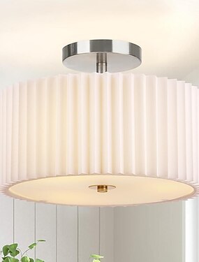 白いシェード付きドラムシャンデリア、キッチン、寝室、リビングルーム、廊下用のモダンなセミフラッシュマウントシーリングライト、ドラムシェード付きシャンデリア110-240v