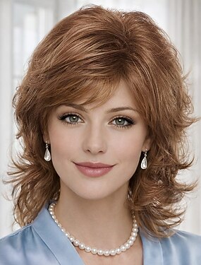女性用シックなレイヤードウィッグ - 自然な輝きのある温かみのある赤褐色のカール