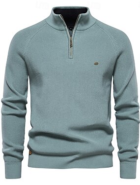 男性用 プルオーバー ニット レギュラートップス ハーフジップ 平織り スタンドカラー クール プルオーバー 学校 バケーション 衣類 春 秋 ブラック ダークネイビー S M L