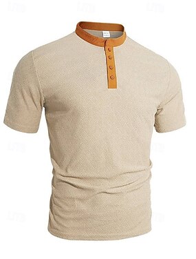 男性用 Tシャツ ヘンリーシャツ 半袖シャツ 半袖 ヘンリー 夏 春 カラーブロック ファッション ストリートファッション カジュアル ジャカード ボタン 日常 バケーション スポーツ ブラック ホワイト バーガンディー メンズトップTシャツ