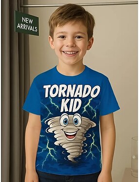 男の子用 3D グラフィック トルネード Tシャツ 半袖 3D プリント 夏 春 スポーツ ファッション ストリートウェア キッズ 4~12 歳 クルーネック アウトドア カジュアル デイリー レギュラーフィット
