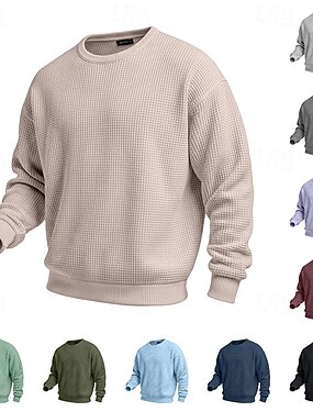 男性用 パーカー ワッフルパーカー プルオーバーフーディースウェットシャツ ブラック ホワイト カーキ色 ライトグレー ダックグレー フード付き 平織り プリーツ パッチワーク テクスチャード加工 スポーツ カジュアル 日常 ストリートファッション クール スポーツウェア 春 & 秋 衣類 パーカー トレーナー
