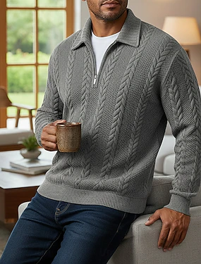 男性用 ジャカード スウェットシャツ プルオーバーフーディースウェットシャツ クォータージッパースウェットシャツ ブラック ホワイト カーキ色 グレー ラペル 平織り ジッパーを閉める テクスチャード加工 カジュアル 日常 スポーツ ストリートファッション クール スポーツウェア 秋 秋冬 衣類 パーカー トレーナー