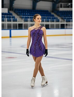 フィギュアスケート ドレス 女性用 女の子 アイススケート ドレス セット パープル ベルベット 伸縮性あり 競技大会 スケートウェア 手作り 花 植物 ファッション ノースリーブ アイススケート フィギュアスケート
