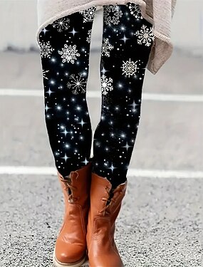 女性用 パンツ レギンス 心地よいレギンス ストリートファッション カジュアル 全長 ハイウエスト スノーフレーク柄 弾性ウエスト プリント 通気性 快適 伸縮性あり バケーション ストリート デイリーウェア ブラック 春 秋 レギュラー