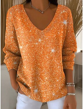クリスマス レディース スノーフレーク ブラウス オンブル デイリー スタイリッシュ カジュアル ロングスリーブ Vネック レギュラートップス デイリープリント ホワイト イエロー オレンジ グリーン レインボー 春 秋 冬