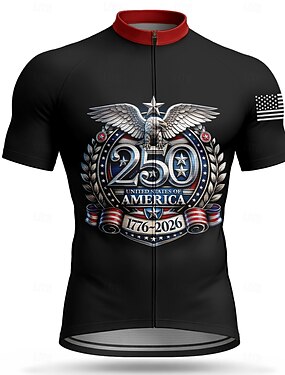 アメリカ建国250周年 アメリカ独立記念日 男性 サイクリングジャージー アメリカの米国旗 半袖 バイク ジャージー トップス 3つのリアポケット付き UV耐性 速乾性 ポケット付き フロントファスナー スポーツ ブラック 衣類