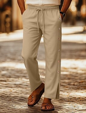男性用 リネンパンツ ズボン サマーパンツ ドローストリング 弾性ウエスト まっすぐな足 平織り 履き心地よい 高通気性 全長 アウトドア カジュアル 日常 ファッション ビジネス ブラック ホワイト