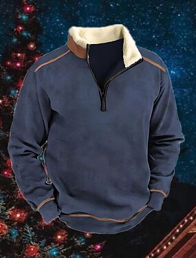 男性用 スウェットシャツ クォータージッパースウェットシャツ ネイビーブルー スタンドカラー 平織り パッチワーク カラーブロック スポーツ 日常 祝日 コーデュロイ ストリートファッション ベーシック カジュアル 春 & 秋 衣類 パーカー トレーナー