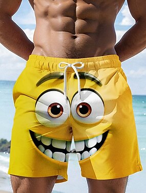 男性用 3D印刷 3Dカトゥーン 笑顔 スイムトランク スイムショーツ ボードショーツ ミディアムウエスト ハワイアン おかしい ビーチでの休暇 サイドポケット メッシュライニング 伸縮性のあるドローストリングウエスト デザイナー 衣類