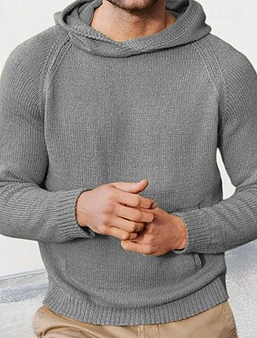 男性用 ニット プルオーバーセーター パーカーセーター リブ ニット レギュラートップス ニット フード付き 平織り フード付き ニット コンテンポラリー カジュアル デイリーウェア 衣類 秋冬 イエロー グリーン M L XL