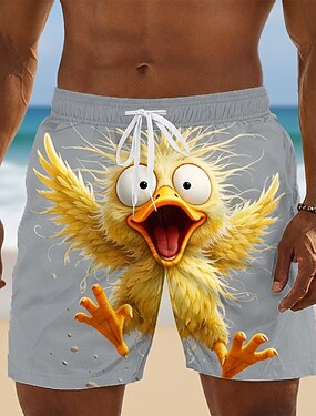 男性用 カートゥン おかしい あひる スイムトランク スイムショーツ ボードショーツ ミディアムウエスト ハワイアン ビーチでの休暇 サイドポケット メッシュライニング 伸縮性のあるドローストリングウエスト デザイナー 衣類