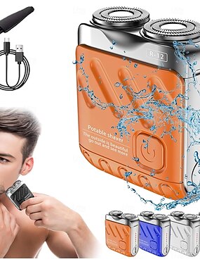 ポータブル回転式デュアルリング電気シェーバー、スーツケースデザインのミニひげシェーバー、男性用防水旅行電気カミソリ、急速充電、長寿命バッテリー、ダブルリング磁気カッター