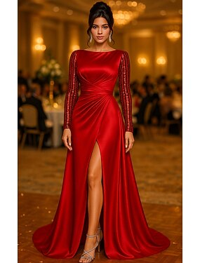 Aライン フロア丈 ビーズ刺繍 フォーマルドレス 花嫁の母のドレス ケープ付きボールガウン イブニングドレス フォーマルドレス エレガント 光沢タイプ シルキー 長袖 クルーネック 結婚式 フォーマル ケープ サテン スパンコール とともに グリッター素材 スパンコール