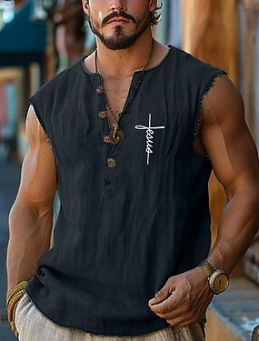 メンズ クロス タンクトップ ベスト トップ ノースリーブ T シャツ その他プリント ディープ V シャツ バケーション デイリー ハワイアン ビーチ バケーション ライトブルー ブラック ホワイト スプリング &夏服