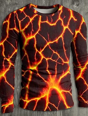 男性用 3D マグマ Tシャツ 長袖 Tシャツ 3Dプリント クルーネック シャツ ファッション 誇張された 日常 ストリート イエロー パープル オレンジ 夏 春 秋 衣類 S M L XL XXL XXXL