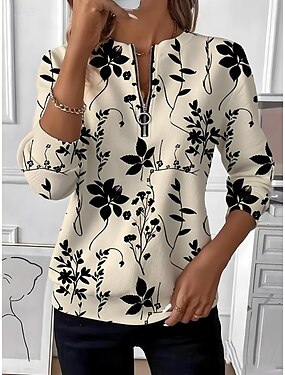 女性用 プルオーバースウェットシャツ ジッパー プリント フラワー グラフィック ファッション カジュアル 長袖 クルーネック レギュラートップス ストリート 日常着 パープル カーキ色 秋 冬