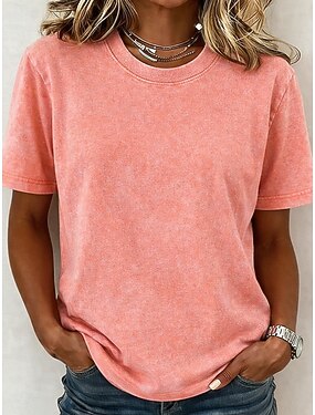 女性用 Tシャツ コットンシャツ ティートップ 平織り ヴィンテージ ファッション スタイリッシュ 半袖 クルーネック レギュラートップス 日常 お出かけ 週末 ブルー ブラック パープル フクシャ オレンジ 夏 春