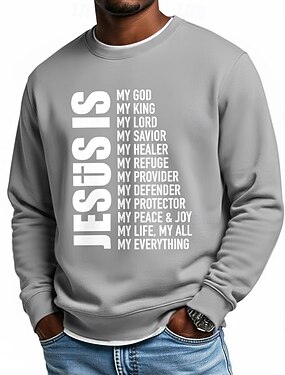 男性用 イエス 信仰 スウェットシャツ ファッション 日常 カジュアル 長袖 クルーネック 家 ストリートウェア スポーツ・アウトドア ブルー ブラック ルビーレッド ライトパープル ライト クルーネック 3D オールシーズン デザイナー S M L XL XXL XXXL