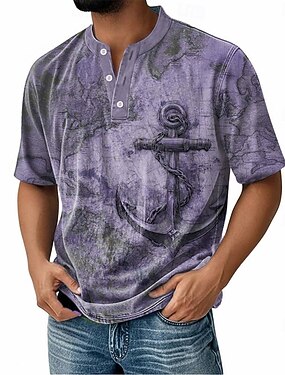 男性用 グラフィック マップ Tシャツ ヴィンテージシャツ ヘンリーシャツ 半袖 3Dプリント デザイナー ベーシック カジュアル 日常 アウトドア スポーツ 夏 ブルー パープル グリーン カーキ色 ヘンリー ヘンリーTシャツ