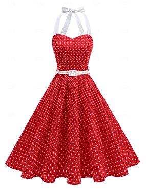 レトリ/ヴィンテージ 1950年代風 ヘプバーン Aラインドレス スイングドレス ホルター 波点 仮装 女性用 マスカレード カジュアル/普段着 バチェロレッテパーティー 成人 ドレス ホームカミングドレス 春夏