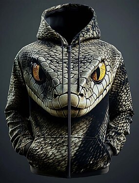 男性用 スネーク ジップパーカー パーカー スウェットシャツ ファッション クール 3D 長袖 フード付き ストリートウェア バケーション お出かけ ブラウン グリーン ブラウン2 ブラウン3 ドローストリング ジッパー 秋 冬 デザイナー S M L XL XXL XXXL