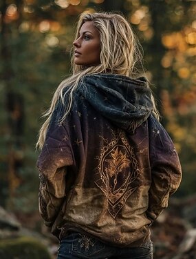 女性用 ジップアップパーカー ジッパー グラフィック 活発的 ヴィンテージ エスニック 長袖 フード付き レギュラートップス カジュアル 家 スポーツ パープル ブラウン ライト ダックグレー 秋 冬