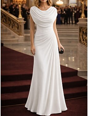 タイト/コラム フロア丈 ウェディングゲストドレス フォーマルドレス イブニングガウン 卒業ドレス エレガント ノースリーブ キャミソール プロムドレス フォーマル サテン とともに ソリッドカラー