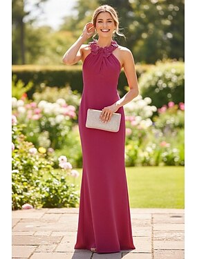 タイト/コラム フロア丈 ウェディングゲストドレス フォーマルドレス イブニングガウン 卒業ドレス エレガント ノースリーブ ホルターネック プロムドレス フォーマル ストレッチ生地 とともに 刺繍の花