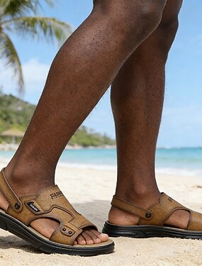 メンズタン調節ストラップサマーサンダル - ソフトレザー、軽量、カジュアル、ビーチ、アウトドア、日常使いに最適