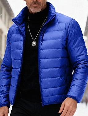 男性用 冬物コート ダウン パフジャケット パッド入りジャケット ポケット 50%ホワイトダックダウン バケーション デイリーウェア デート レギュラー ファッション カジュアル 快適 保温 秋 冬 単色/無地 ワイン ブラック ネイビーブルー ロイヤルブルー パファージャケット