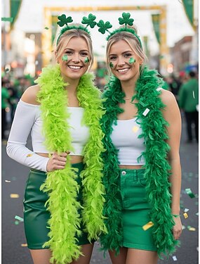 女性用のグリーンのフェザーボア。柔らかい羽根素材で、聖パトリックの日、カーニバル、お祭りのお祝いに最適です。