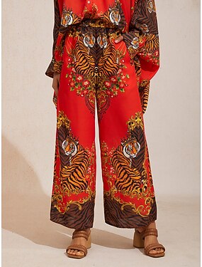 スカーレットタイグレスの流れるようなシフォン素材のゴムウエストワイドレッグパンツ