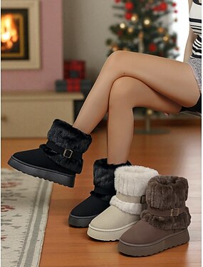 女性用コーヒー色の暖かいファー裏地付きスノーブーツ - アウトドア、旅行、雪の日、毎日の快適さのための滑り止め冬用アンクルブーツ