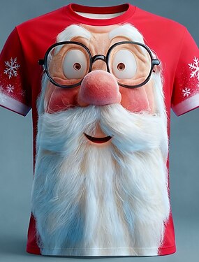 クリスマス 男性用 サンタクロース 3Dカトゥーン Tシャツ 半袖 Tシャツ 3Dプリント クルーネック シャツ 日常 デザイナー アーティスティック バケーション パーティー ストリート 白1 赤3 ルビーレッド オールシーズン 衣類 S M L XL XXL XXXL 4XL