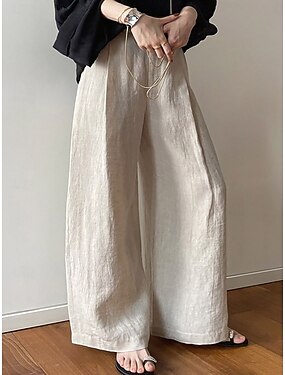 女性用 フェイクコットンリネン ワイドレッグ チノパン サマーパンツ 旅行度假风 ストリートファッション カジュアル 全長 ミディアムウエスト 平織り ポケット 弾性ウエスト 履き心地よい 高通気性 マイクロエラスティック 日常 アウトドア ストリートウェア ブラック ホワイト ダークネイビー グリーン 夏 春 レギュラー