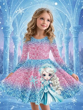 女子 3D グラフィック アニメ ドレス 長袖 3Dプリント 春 秋 性能 バケーション パーティー カジュアル プリンセス 美しい 子供 4〜12年 カジュアルドレス A ラインドレス 膝丈 レギュラー