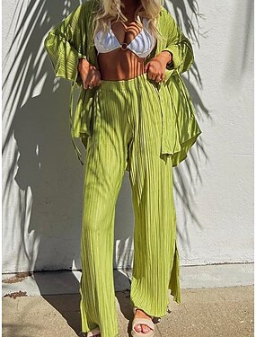 女性用 パンツセット ボレロトップ 長袖 シャツカラー 平織り フリル 太ももを分割 エレガント ファッション ストリートファッション カジュアル 日常 アウトドア ブルー ブラック ホワイト 夏 レギュラー