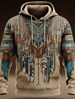 男性用 トライバル プルオーバーパーカー スウェットシャツ ファッション エスニック ヴィンテージレトロ 長袖 クルーネック アウトドア トラベル パーティー 贈り物 ブルー ブラウン グリーン ドローストリング 秋 冬 デザイナー S M L XL XXL XXXL