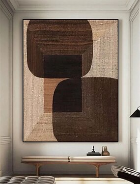 手作りの質感のある油絵、抽象的なアースカラー、古びた効果のあるブラウントープ、深いチャコールのひび割れ、キャンバスの壁アート、ヴィンテージ風のミニマリストな装飾、リビングルームに飾る準備ができて、高級ギフト