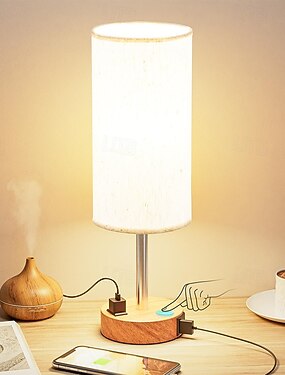 USB付きタッチ式ベッドサイドテーブルランプ - 寝室のナイトスタンド用3段階調光木製ランプ、寮、リビングルーム、オフィス、子供部屋用の充電ステーション付きデスクランプ、小型、14インチ