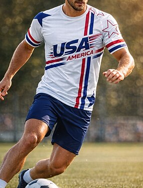 男女兼用(儿童不要选这个) サッカーユニフォーム 幾何学模様 アメリカ アメリカの国旗 プルオーバートップス アスレチックTシャツ 夏 カラーブロック 半袖 カジュアル スポーツ スパンデックス UPF 50 速乾性 吸汗性 高通気性 トーナメント サッカー カジュアル ランニング ジョギング しつけ用品 ブルー スポーツウェア アクティブウェア