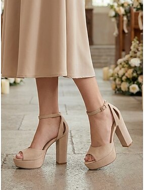 女性用ヌードプラットフォームハイヒールサンダル、都会の結婚式での結婚式のゲストのためのチャンキーブロックヒールのエレガントな靴