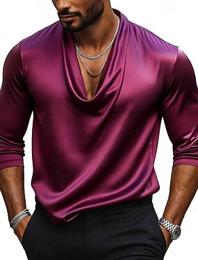 男性用 シャツ シルクのような サテンシャツ カジュアルシャツ 平織り フォーマル 結婚式 ブラック ホワイト ブルー パープル 長袖 カウルネック 春 & 秋 オールシーズン 衣類 フリル