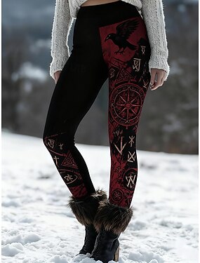 女性用 レギンス 心地よいレギンス 旅行度假风 ヴィンテージ エスニック 全長 ハイウエスト グラフィック プリント 快適 伸縮性あり カジュアル 日常 バケーション ブラック 春 タイト