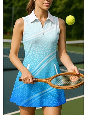 女性用 幾何学模様 スポーツドレス テニスポロドレス ノースリーブ クォータージップ 弾性ある モイスチャーコントロール 高通気性 バレーボール テニス ゴルフ 折襟 ハイネック ドレス ブルー テニスウェア