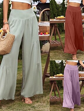 女性用 フェイクコットンリネン ズボン サマーパンツ ビーチパンツ 旅行度假风 ベーシック カジュアル 全長 ハイウエスト 平織り ワイドレッグ 弾性ウエストバンド ソフト 快適 高通気性 伸縮性あり ビーチ 祝日 ブラック ホワイト ブルー ライトパープル 夏 春 レギュラー
